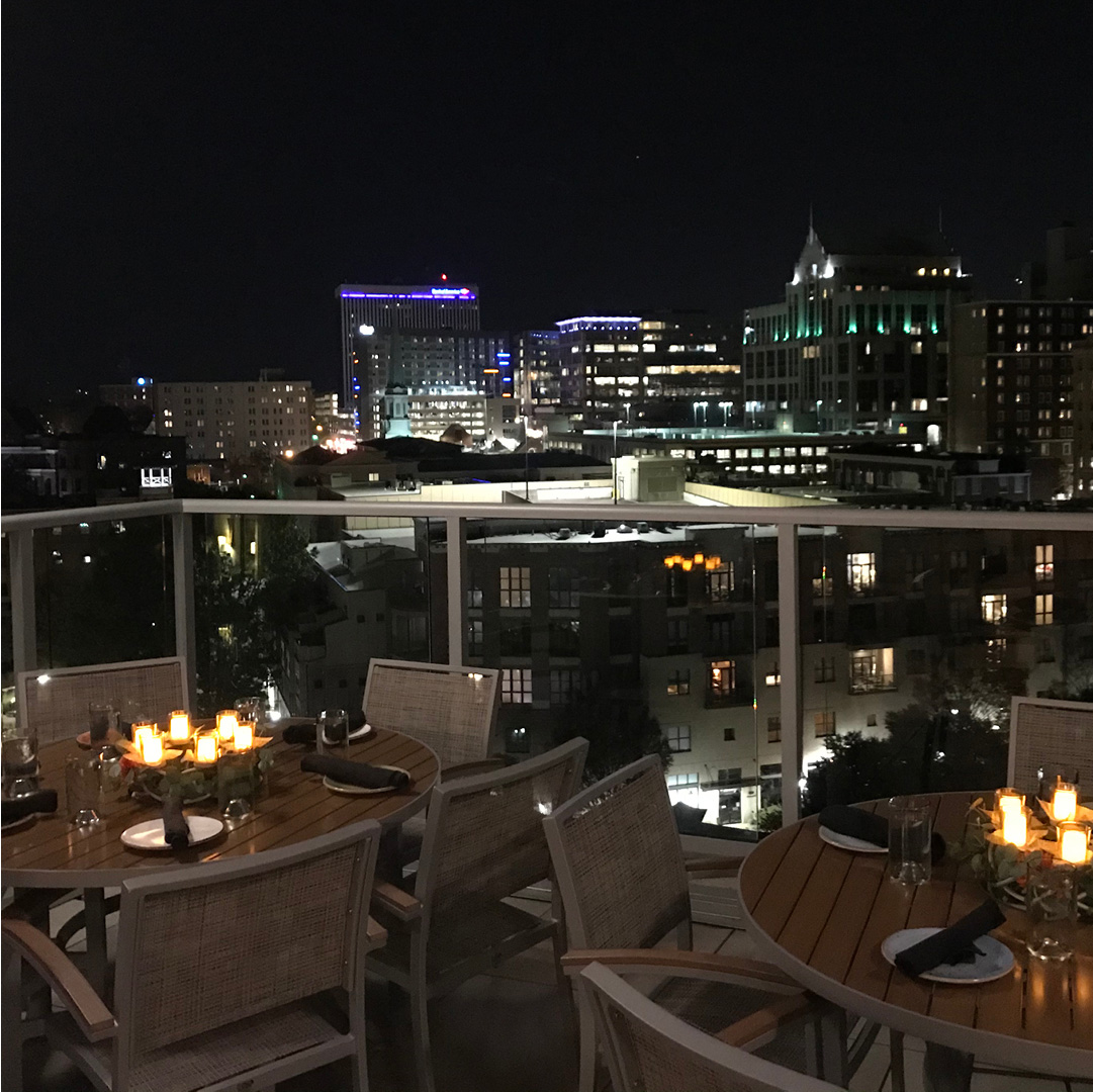 Our goal at UP on the Roof is to combine artisanal flavors of the Upstate with stunning riverside views of downtown Greenville and the surrounding Blue Ridge Mountains.